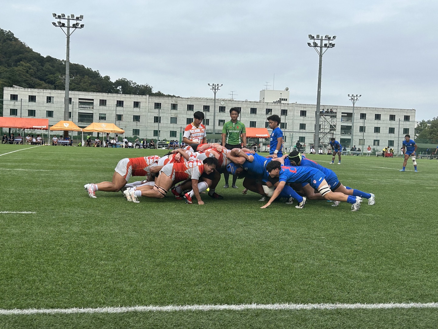 10月5日、第3節は序盤こそ、朝鮮大学に2トライ2ゴールを決められ0-14とリードを許しましたが、そこから本学が本領を発揮し、57-19と逆転で勝利しました。
