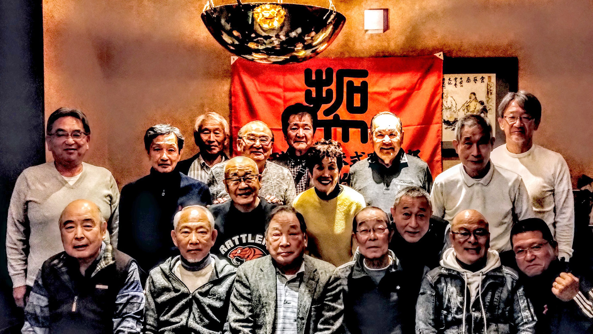 会旗の元、校歌一節と黙祷し、押忍で始まり押忍で締めるまで楽しいひと時を過ごしました。金井OB会長より今シーズンの展望と必ずや2部復帰の熱い言葉と元気を受けた。楽しい歓談は瞬く間にTimeup。皆健康で次回の再会を約束して散会しました。68期鈴木の奥様の参加も皆で大歓迎!
